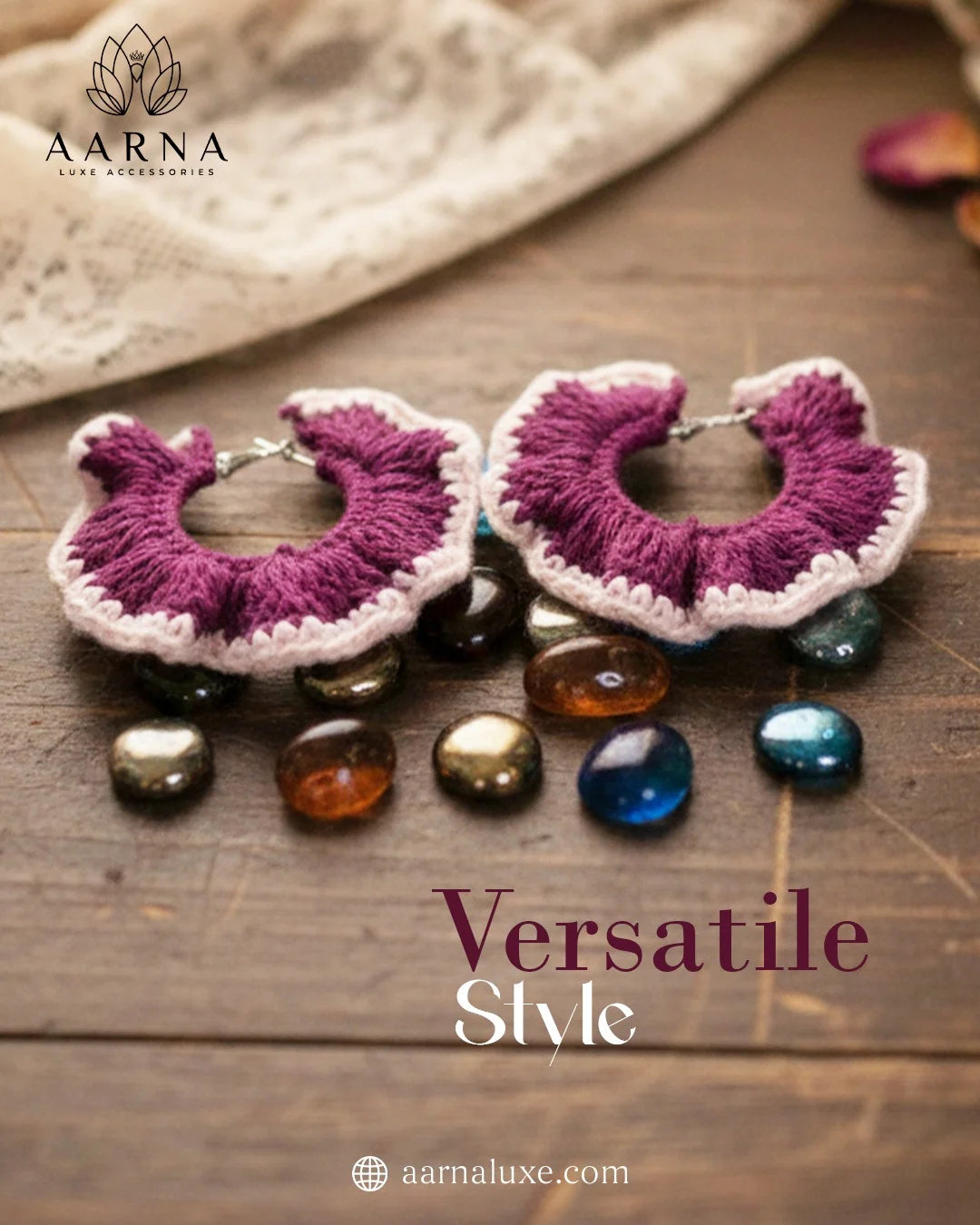 The Rose Ruffle Hoop Earrings are a perfect blend of handcrafted artistry and modern boho elegance. Carefully handmade using premium-quality yarn, these crochet hoop earrings showcase soft ruffled edges inspired by blooming rose petals. The rich rose hue paired with subtle contrast tones creates a feminine yet statement-worthy look.